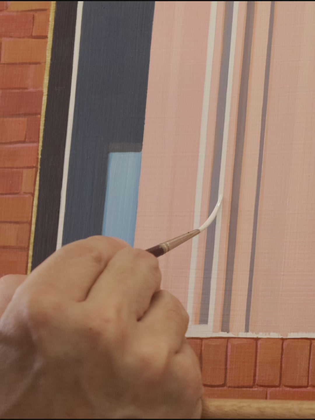 Central to this is the unique process of oil painting his subjects in reverse, & then transferring them onto the back of a piece of glass. This labour-intensive technique produces artworks that feel nostalgic & visually unexpected.